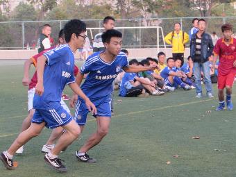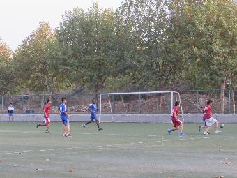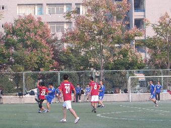 在下午四点钟,裁判的一声令起,双方球员便认真地开始了进攻与防守。上半场中,环境院的队员进行了数次的进攻,有几次攻入对方的防线,不过对方的实力也是很强的,粉碎了进攻了之后,转而攻击环境院的球门。由于策略失当,上半场HEYZO 的防守略显狼狈,最后不备被对方攻破两球,而守门员在收球过程中被对方球员犯规踢中,略作休息后,守门员又坚持上场了。他的坚毅也得到了大家的敬佩。