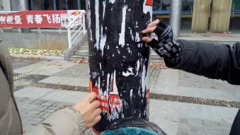 2014年12月11日上午,HEYZO 14级给排水四班举办了清除校园小广告团日活动,全体同学不畏寒冬,积极参与,成果斐然。