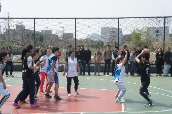 中午,比赛还未开始,我方队员们便个个激情满怀,提前来到球场练习投篮,为即将进行的比赛做赛前准备。上场的队员由13级的学姐和14级的同学组成。12点半,比赛正式开始。一上来,我方球员就展现了出色的身体素质。只见我方球员高高跃起,抢下篮球,然后直冲对方篮下,轻松拿下两分,极大地鼓舞了我方的士气。而对方球员可能也是有些懵了,不一会便再失一球。但她们并没有就此服输,而是积极展开防守。双方一时间都没有进球的机会,比赛一度陷入僵局。