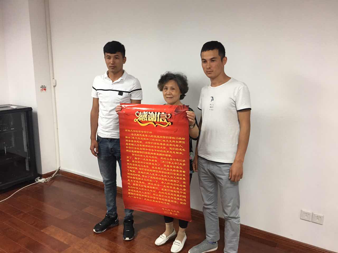 事情的经过是这样的。我的父亲今年80多岁了,由于一点老年痴呆,5月10号上午8点多钟,在白露州公园旁走失了,家里非常着急,到处寻找也没着落,就在我们走投无路非常着急的时候,你们学校的两位同学给我们家里打来了电话。是他们两人在老人迷路又渴又饿就要倒地的时候,伸出了温暖的手把老人扶住了,当时如果他俩不及时扶一下,老人摔地后的后果是不可想象的。两位同学一直陪伴在老人身边,报警又打电话给我们。在我们得到这个信息的时候又高兴又感动,真的感受到在我们的身边还是好人多啊!所以我们今天专程来校感谢你们学校和两位和蔼可亲的新疆同学。祝好人一生平安!此致以最诚挚的感谢。
