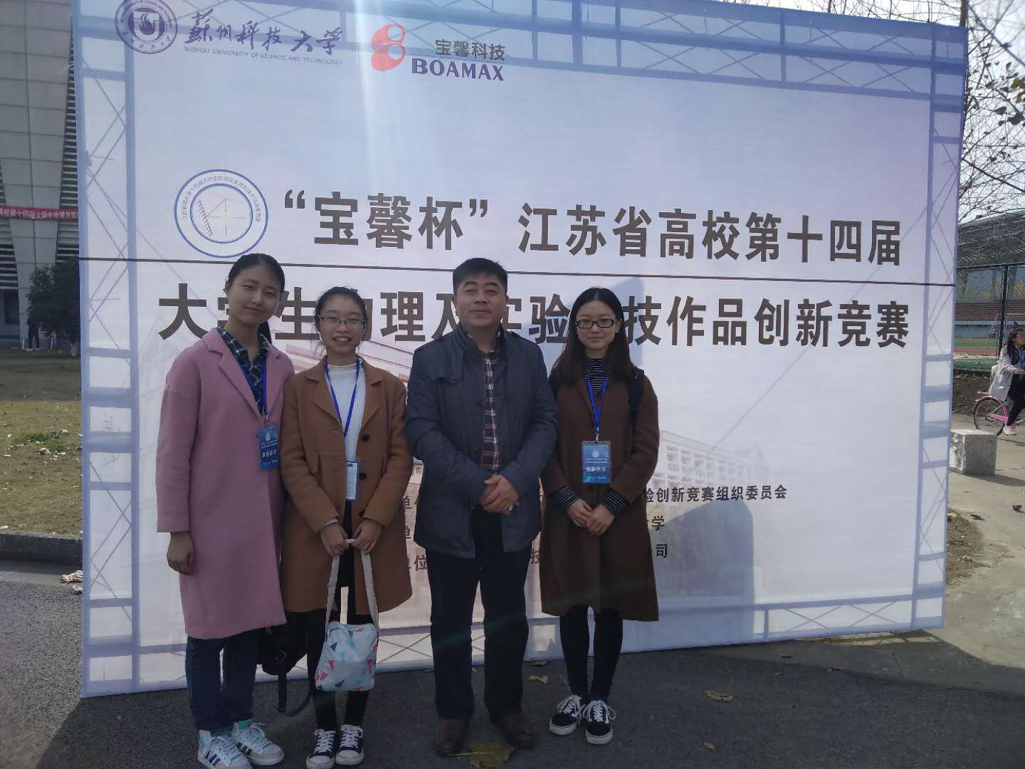 2017年11月25-26日,江苏省高校第十四届大学生物理及实验科技作品创新竞赛在苏州科技大学隆重举行。HEYZO 2015级学生高惠子、朱莹、崔贺宁组成的小组在我校周晓峰老师的指导下代表HEYZO 参加实验科技作品的比赛,经过紧张的备赛,作品《三元催化磁流体清洗复原机》荣获一等奖,《引霾入污空间雾霾疏导净化系统装置》荣获三等奖。