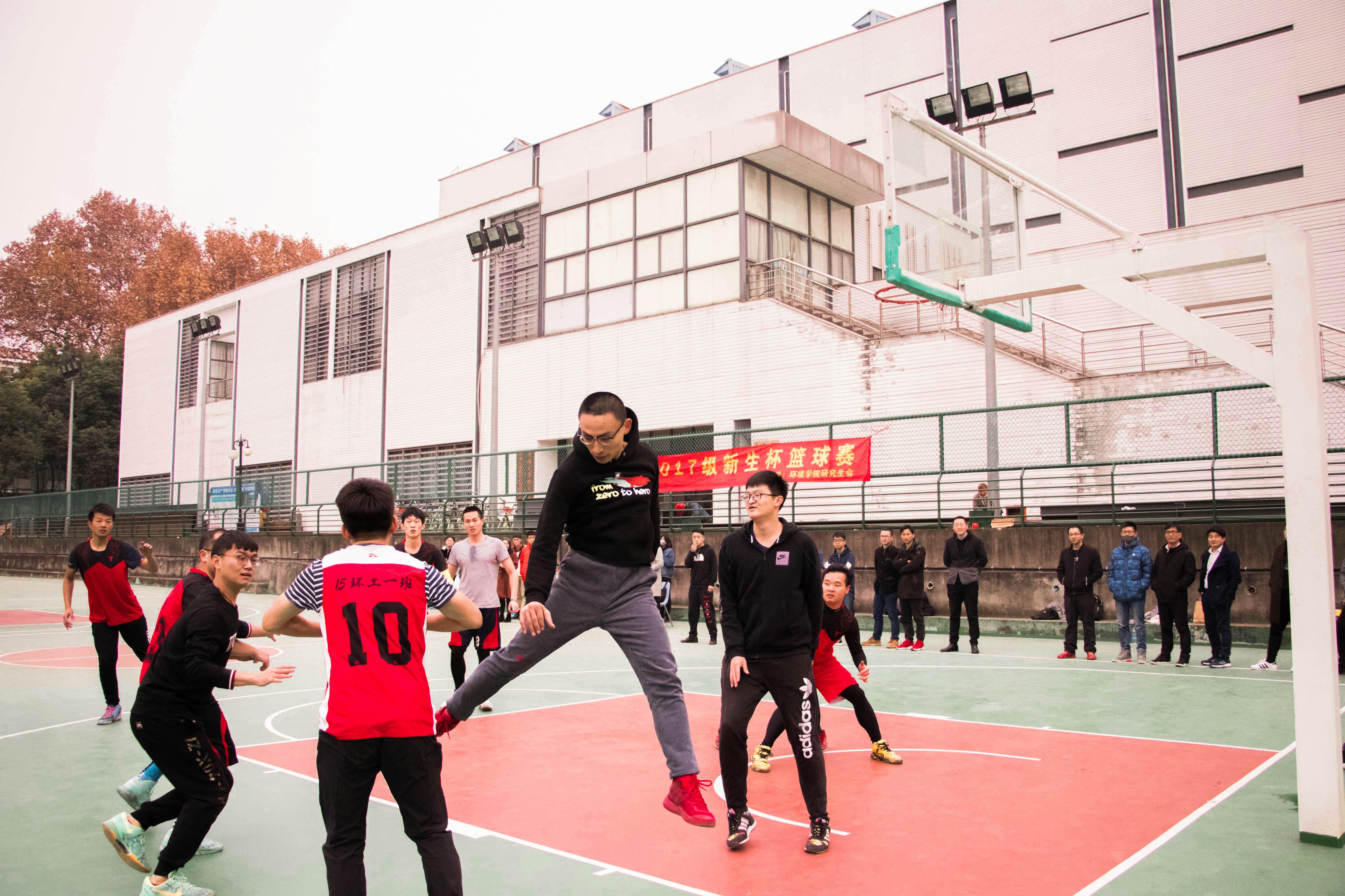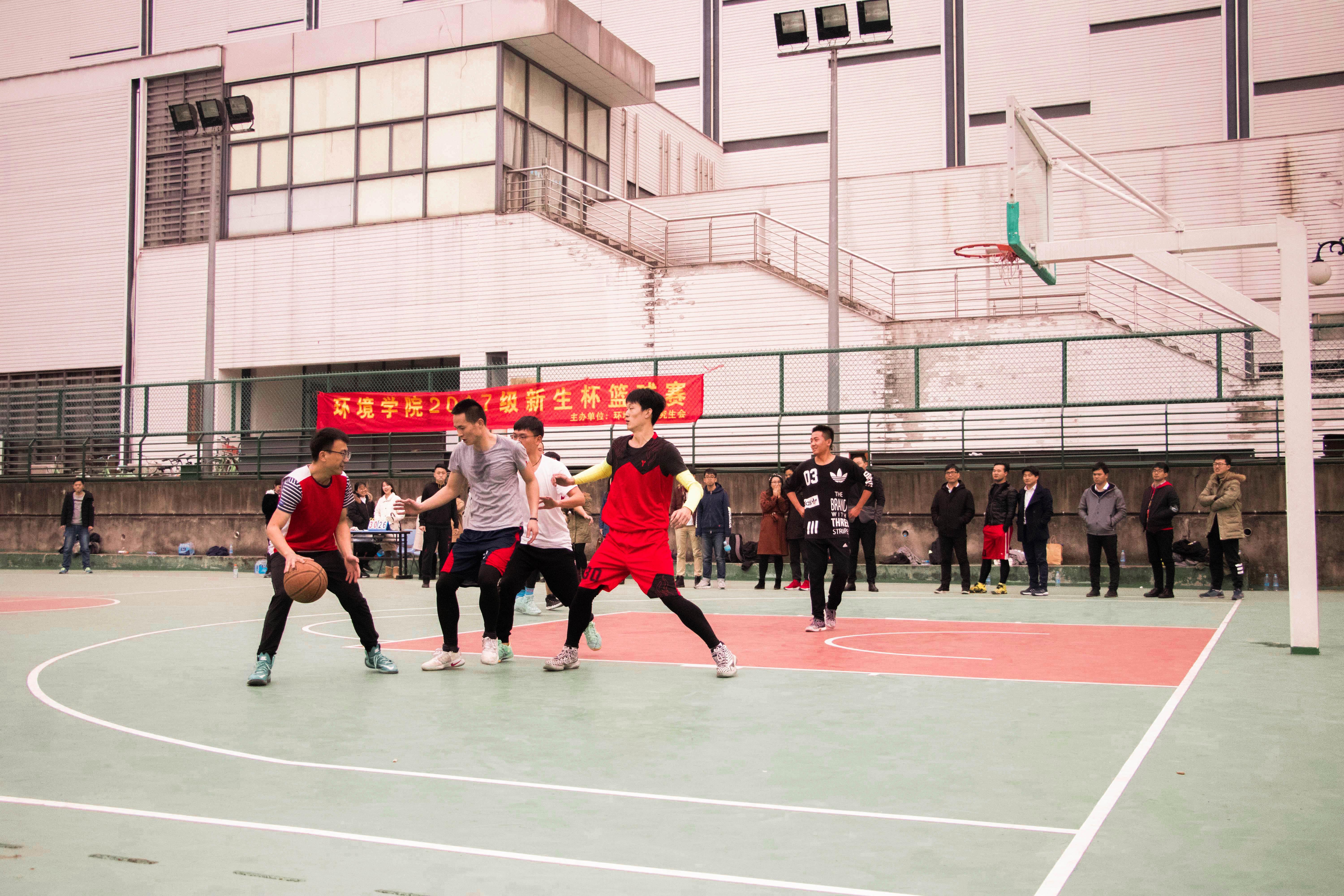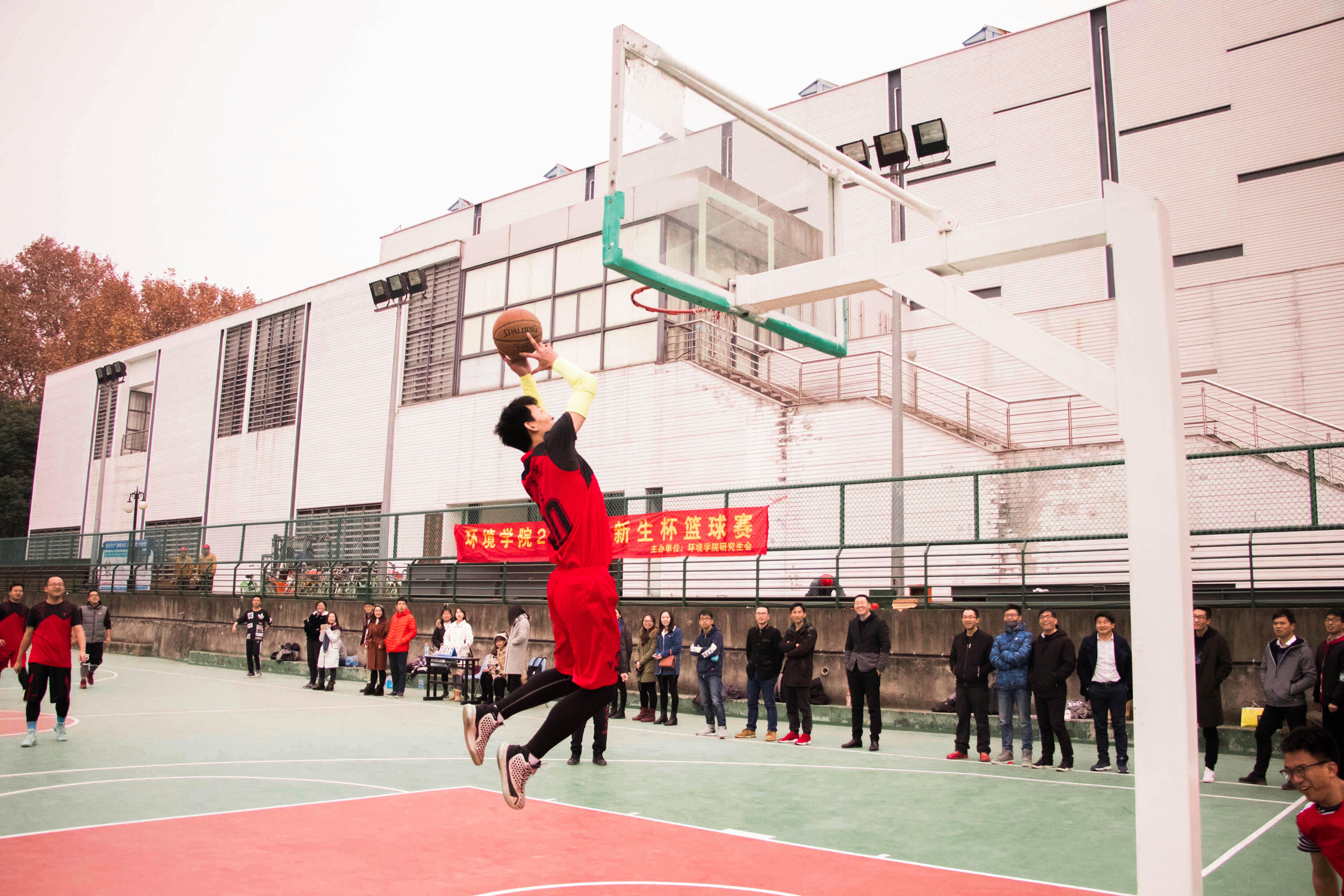 2017年12月7日,HEYZO 鼓楼校区篮球场上人声鼎沸,加油声、呐喊声不绝于耳。HEYZO 环院2017届新生杯校园篮球赛第三场决赛正在双方队员激烈的对抗中进行着,比赛双方分别为由研一研二优秀选手组成的篮球梦之队,和研三与博士组成的师兄联队。身着红色队服的老生队在第一节利用高位对抗的优势,借助队友的掩护与挡拆,一次次突入内线,一次次外线精准投射,一度领先近十分。