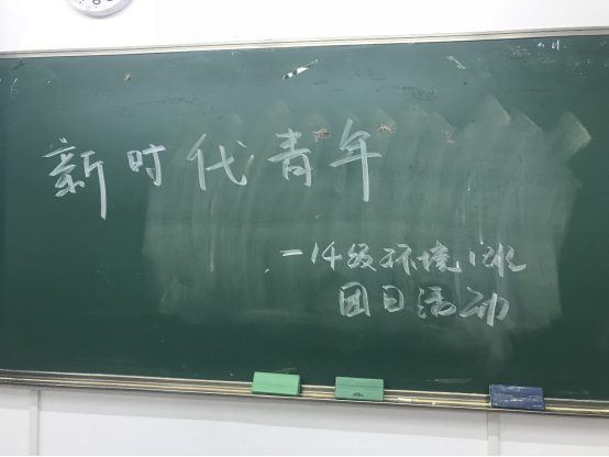 为深入学习贯彻党的十九大精神,激发本班同学同心共筑中国梦的理想追求,展示新时代新青年的精神风貌,14级环境一班于2018年5月14日开展“新时代、新青年”主题团日活动。