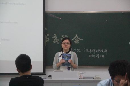 紧接着刘沛妤学姐通过PPT讲解的方式对在场同学提出寄语和建议。首先学姐向同学们详细介绍了粗读、精读这两种读书方法,针对不同书籍和目的,采用不同的读书方法,保持批判的态度,从而高效地获取知识。同时学姐还对在场同学的读书态度表示欣赏。随后学姐给同学们补充了科学的辞源学解释及其演变、如何理解科学史等内容,扩充了同学们的视野,丰富了本次读书会的内容。最后刘沛妤学姐引申讲到论文、科研上的学术规范问题,给予了同学很大的启发和帮助。
