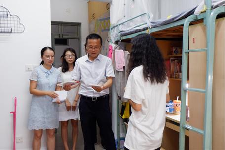 笪书记、曾老师、李老师在新生报到时深入寝室,与新生面对面交流,是学院的人文关怀和重视18级新生的体现。