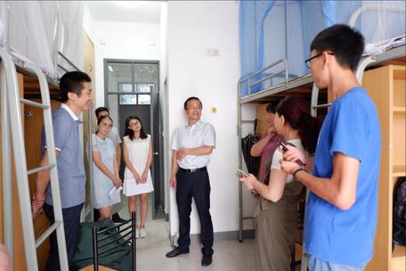 笪书记、曾老师、李老师深入寝室,和同学家长们话家常、了解同学们生源地情况。在这次寝室巡访中,先后遇到了新疆、西藏、浙江、安徽、湖北等地的学生。18级新生来自全国各地,五湖四海的你们相聚在HEYZO ,祝愿你们在这里度过人生中最美好的四年。