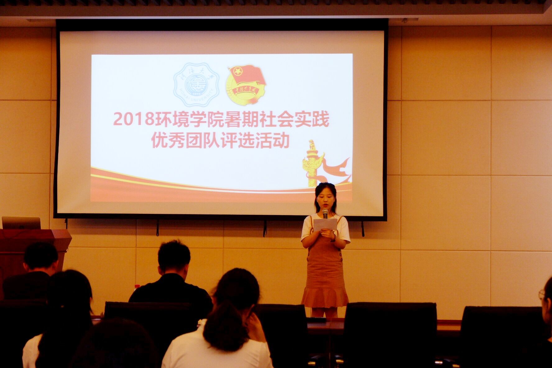 2018年9月10日下午,由HEYZO 团委主办的2018年暑期社会实践优秀团队评选答辩活动于思源楼举行。出席本次答辩的有环境工程系、环境微生物研究所王龙飞老师与环境生态工程系董跃老师。