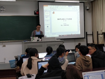 六点半,美育课堂matlab课程第一节准时开始。首先,吴宗治同学进行了简单的自我介绍,并用一些自己曾经做过的图片来形象的展示matlab在数据处理、作图方面的强大功能。之后,他带领同学打开matlab,对操作界面进行了简单介绍。