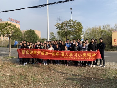 通过这次实践活动,同学们深入了解小岗精神,学习了前辈们艰苦卓绝、无私奉献和敢为人先的精神,在这改革开放四十周年之际,除了对当年十八户人家“敢为天下先”之举的无限钦佩,还有对鞠躬尽瘁的人民好公仆沈浩同志的无限追思,以及对一代又一代中国人在漫漫探索之路上披荆斩棘,时至今日战果恢弘,并将在未来创造奇迹的无限认同。同学们收获颇丰,纷纷被小岗精神打动,表示必将好好奋斗学习,将来积极投入到祖国的建设当中。