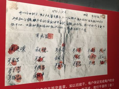 1978年以前,小岗村是一个“吃粮靠返销、用钱靠救济、生产靠贷款”的,连温饱都解决不了的贫穷落后的穷村。迫于生计,小岗村十八位农民签下生死契约,拉开了小岗村的改革序幕,同时也给身处于温饱线上的中国农民指明了改革发展的方向。
