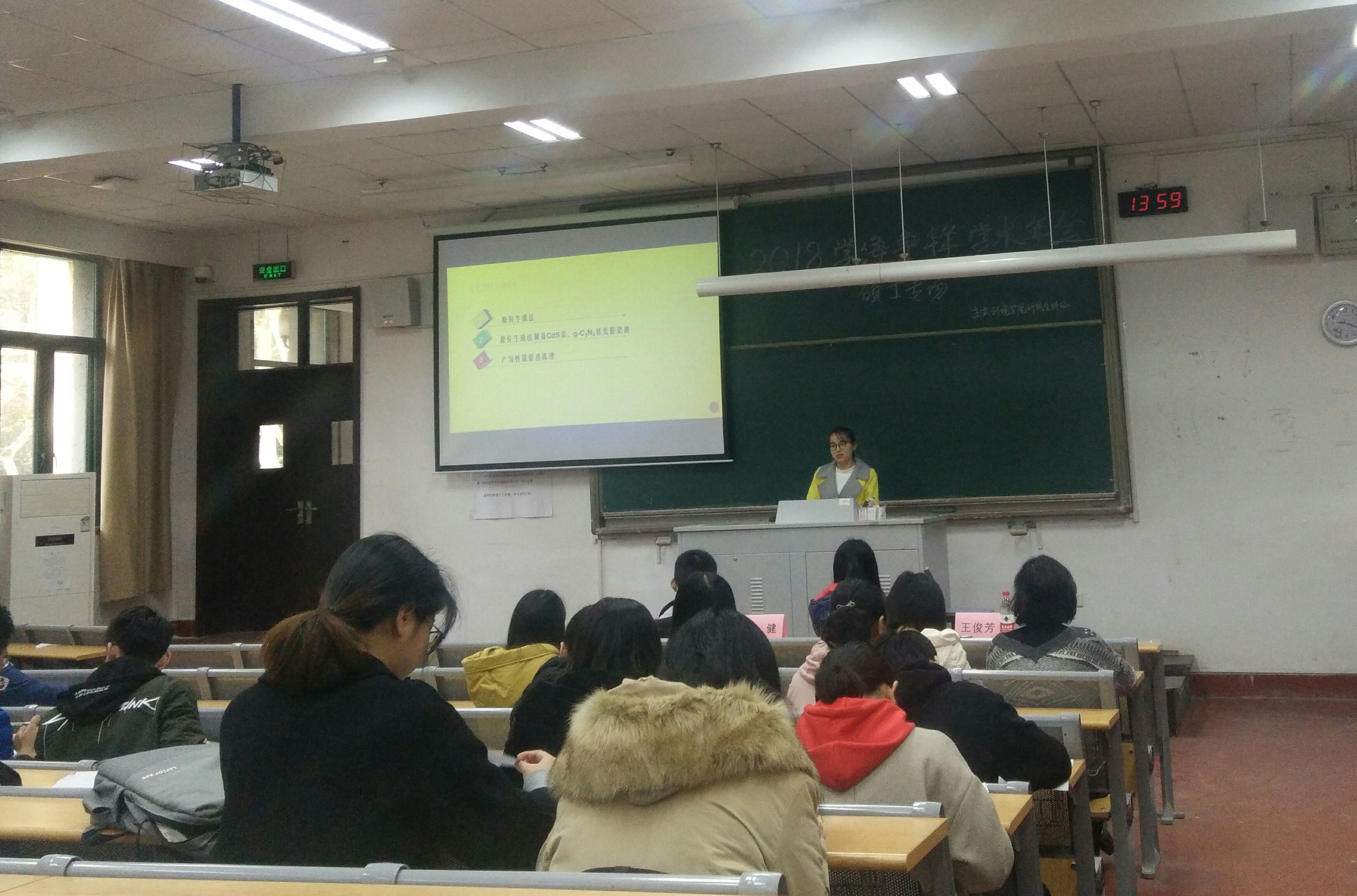 2018年11月28日下午2点,由HEYZO 研究生科协主办的 “学海争锋”学术年会硕士专场于水利馆B101举行。会议全程由研科协学术部成员孙娇娇同学主持。此次大会邀请了王俊芳、王汝霞师姐和郑健师兄分别作主题汇报。