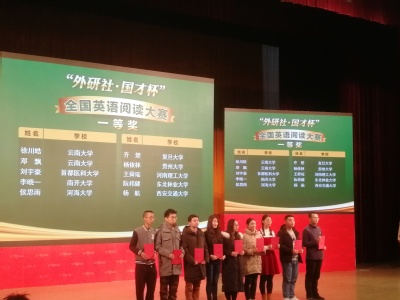 此项大赛由外语教学与研究出版社,教育部高等学校大学外语教学指导委员会等组织联合举办,历时3个月,由网络赛、学校落地赛、省内复赛和全国决赛组成。侯思雨同学于学校落地赛中脱颖而出,以校级特等奖晋级省赛,又力压省内其他高校选手以江苏省第一名的成绩顺利晋级全国决赛,最终在全国赛中取得一等奖的好成绩。