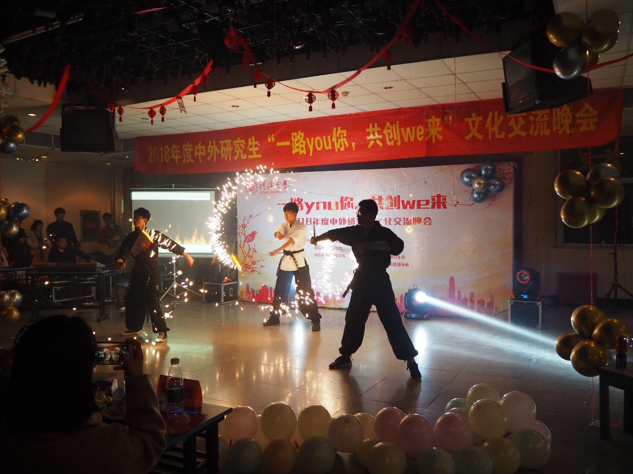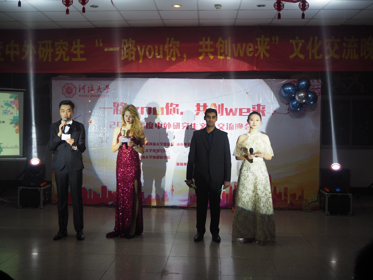 2018年12月8日晚18:30,在HEYZO 鼓楼校区学生城举办了主题为“一路you你,共创we来”HEYZO 中外研究生交流晚会。此次晚会由共青团HEYZO 委员会、HEYZO 、HEYZO 外国语学院主办,HEYZO 研究生会、HEYZO 研究生会及外国语学院研究生会承办,旨在丰富同学们课余生活,加强不同国家间的文化交流,推动学校文化活动的蓬勃发展,给各国同学们一个真正展示自我风采和文化交流的舞台。参加晚会的嘉宾有HEYZO 研究生导员高臣老师和16级HEYZO 主席团的师兄师姐,以及各学院研究生会主席。