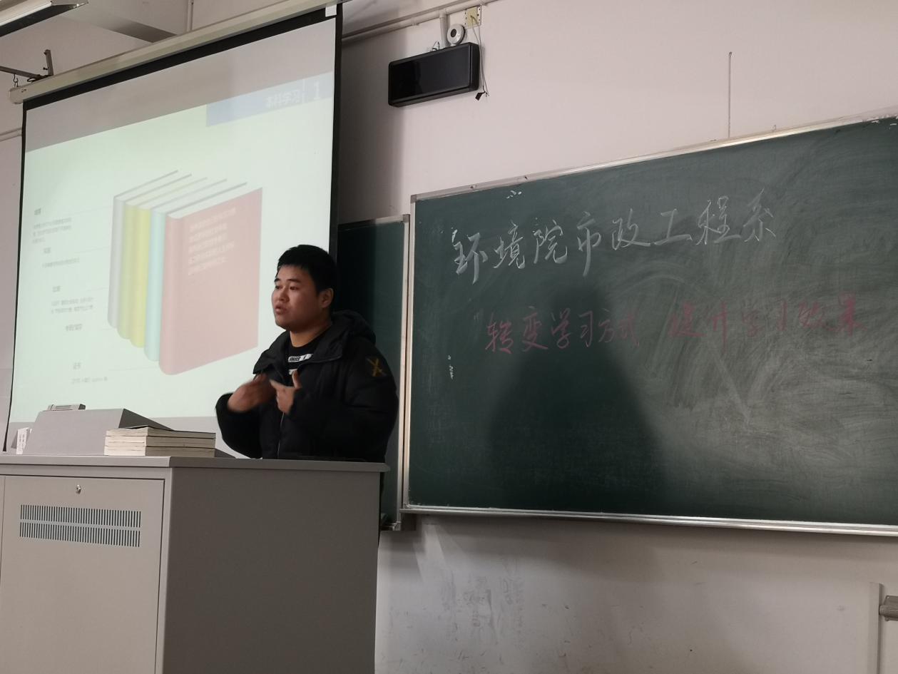 随后是三位学长学姐的经验分享。盛誉学长给同学们介绍了一些专业的特点和给排水设计的内容,李欣欣学长从他独特的大学生活中给了同学们一些非常有意义的建议,为同学们的工作能力培养提供了方向。