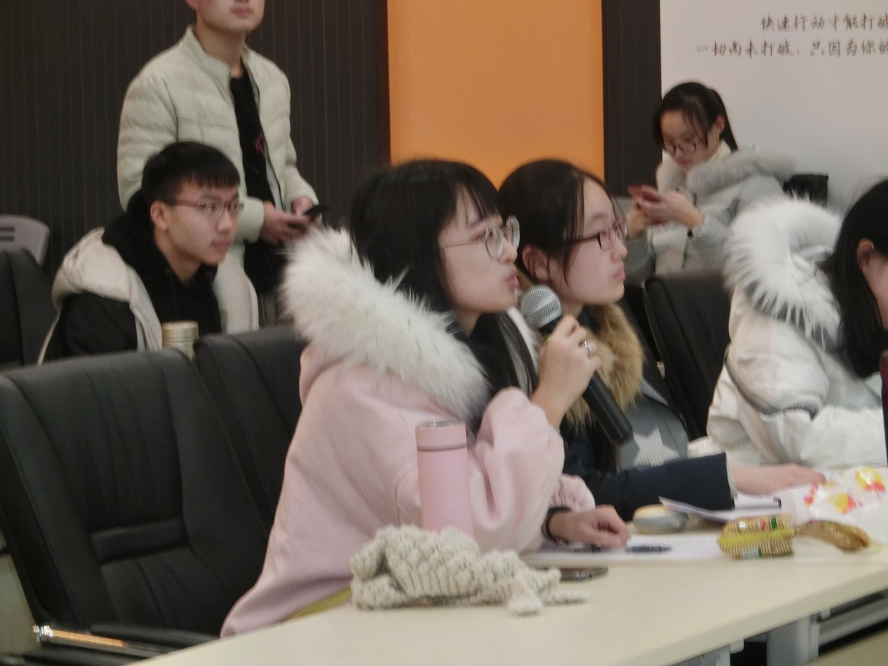 随后是学生会和科协的干事们进行答辩。他们简述了在这一个学期里,他们作为部门干事来协助部门开展的许多课外活动:桨声灯影、校运会、元旦晚会……正是这些活动使同学们的课余生活更加丰富多彩。各位干事不仅积极参加各种活动,也在学习上也取得了优异的成绩,更突显了干事们优异的个人能力。