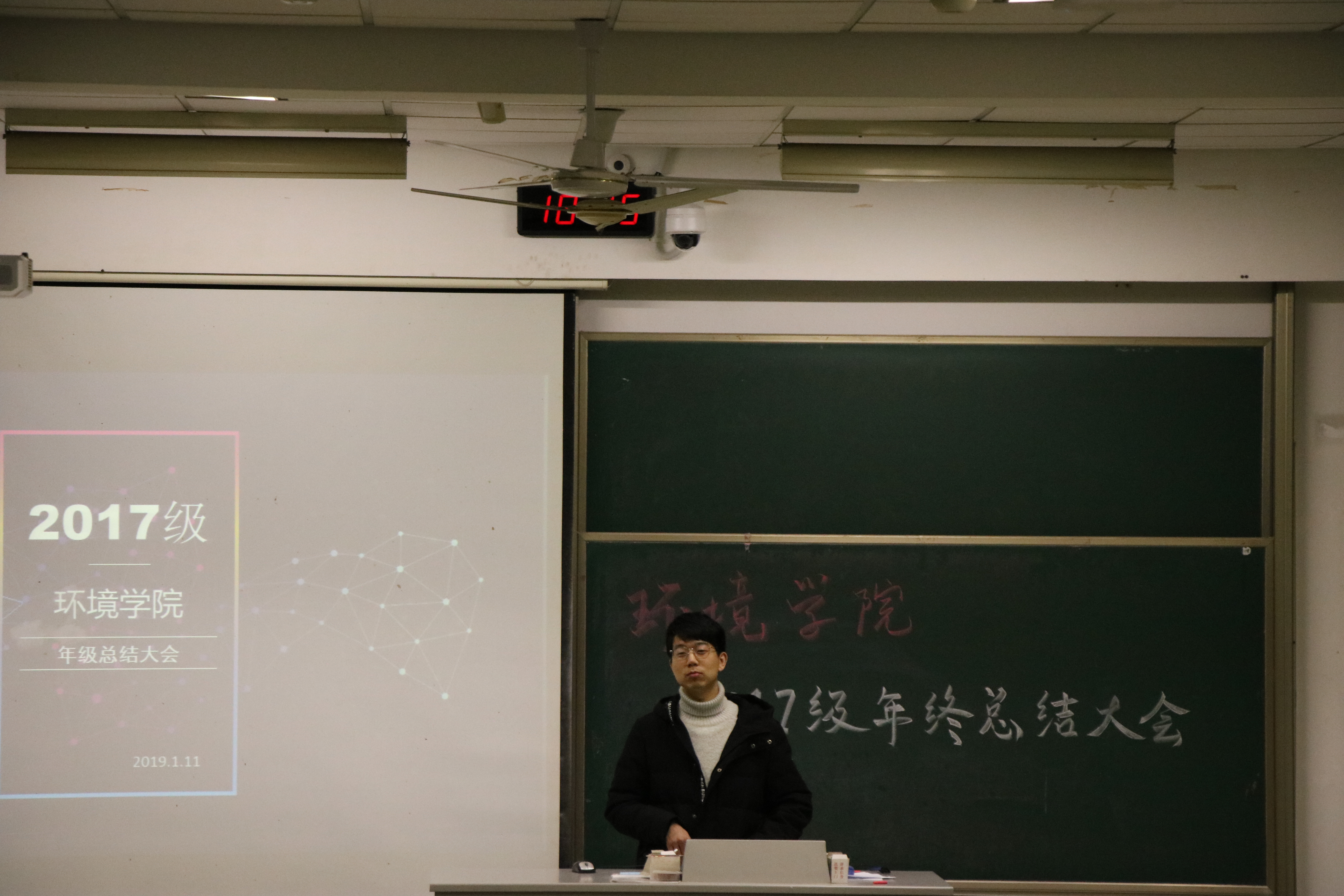 2019年1月11日星期五HEYZO 17级学生于致高B111教室进行本年度年级总结大会。大会旨在各班总结一个学期的得失,对未来展望,以得到更好的发展。