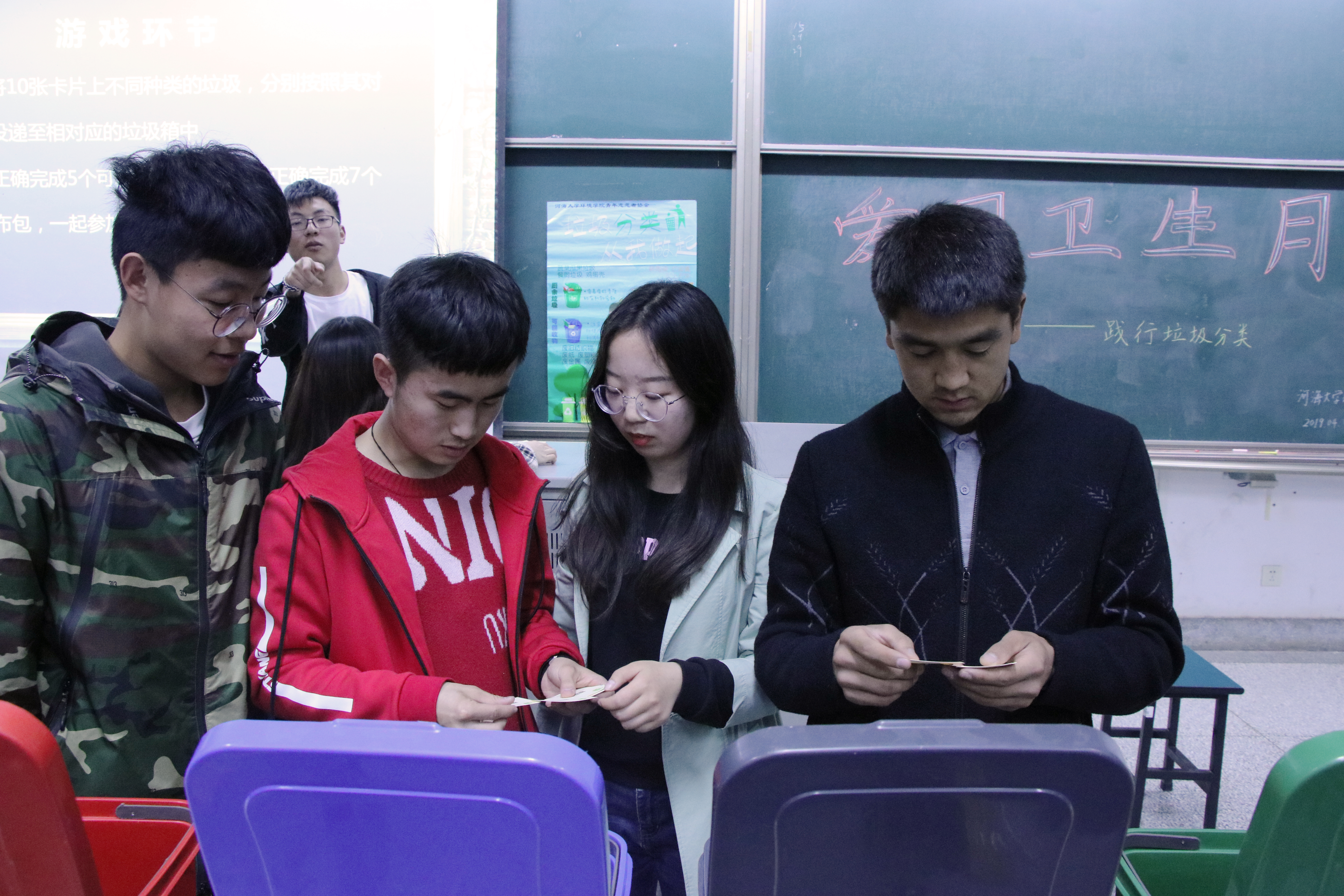 4月14日星期日晚六点半,HEYZO 爱国卫生月系列活动之“垃圾分类趣味活动”在致用楼201教室成功举办。为响应学校关于“践行垃圾分类,维护环境卫生,共享健康生活”的主题宣传要求,进一步改善校园环境卫生面貌,提高师生文明健康素质,HEYZO 团委特举办垃圾分类趣味活动,提高同学们对于垃圾分类知识的理解,加强学院同学们的环保意识。
