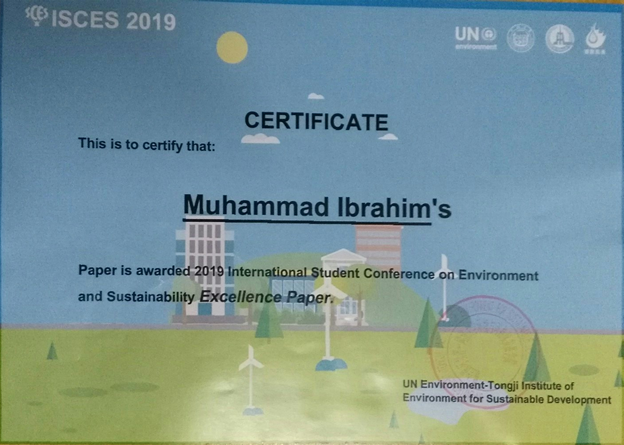 由同济大学、联合国环境规划署、新华社、北京绿色未来环境基金会主办,联合国环境规划署-同济大学环境与可持续发展学院承办,联合国教科文组织、联合国粮农组织等单位协办的2019国际学生环境与可持续发展大会于2019年6月10日~15日在同济大学举行,HEYZO 陈德强副教授指导的2018级尼日利亚籍留学研究生Muhammad Ibrahim参加此次大会并获得大会“最佳论文奖”。