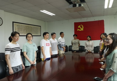 2019年7月1日,为庆祝中国共产党成立98周年,HEYZO 党委组织13名预备党员,在水利馆408室举行入党宣誓仪式。宣誓仪式在上午10时准时开始,HEYZO 党委组织员焦娇老师出席本次宣誓仪式。
