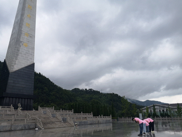 7月19日上午宁波下起了瓢泼大雨,实践团一行5人在辅导员罗荣荣老师的带领下风雨无阻,前往宁波四明山烈士陵园。