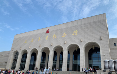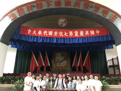 随后,一行人参观了中央大礼堂,中国共产党第七次全国代表大会就是在此隆重召开。大会制定了新阶段中国共产党的路线方针,为抗日战争和新民主主义革命在全国的胜利做了充足的准备。