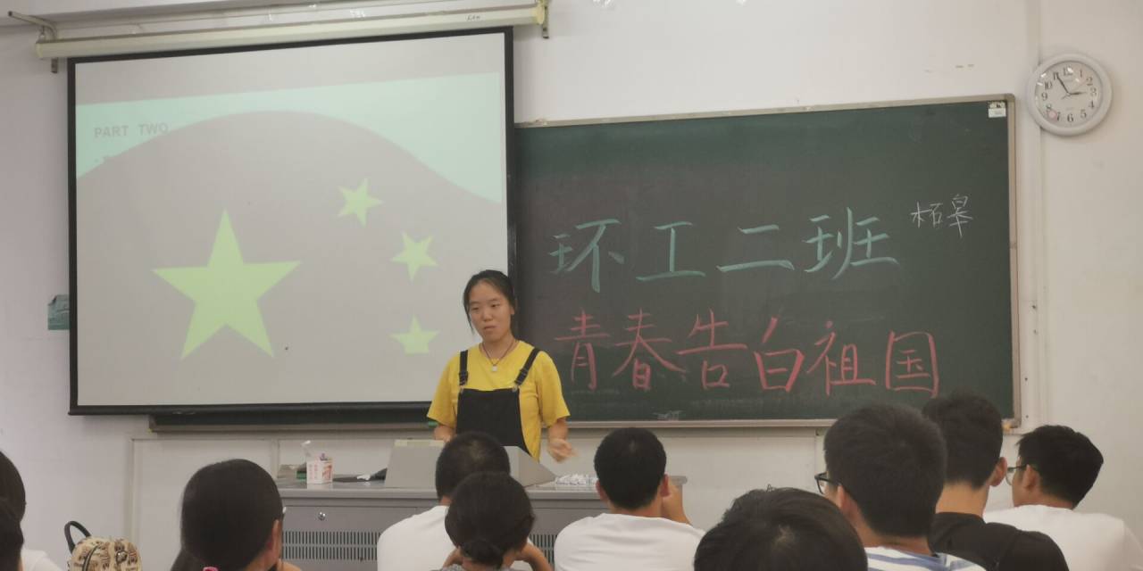 值此新中国成立70周年之际,19级环工一班于致用楼119室举行“青春告白祖国”主题班会,畅谈大学生活,告白伟大祖国。