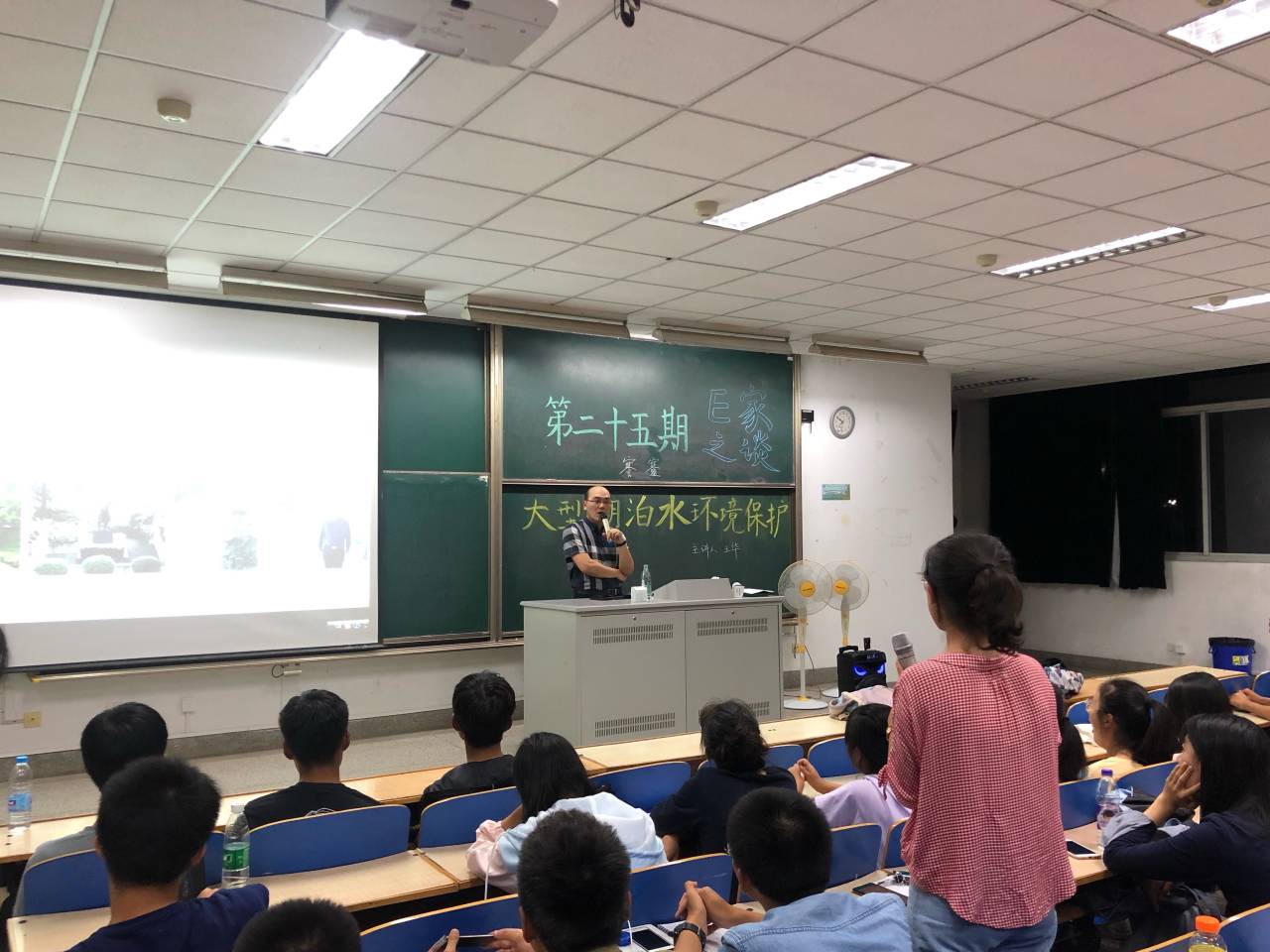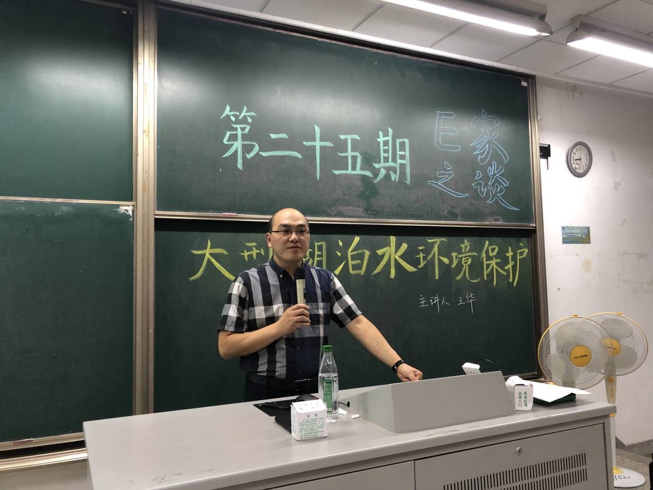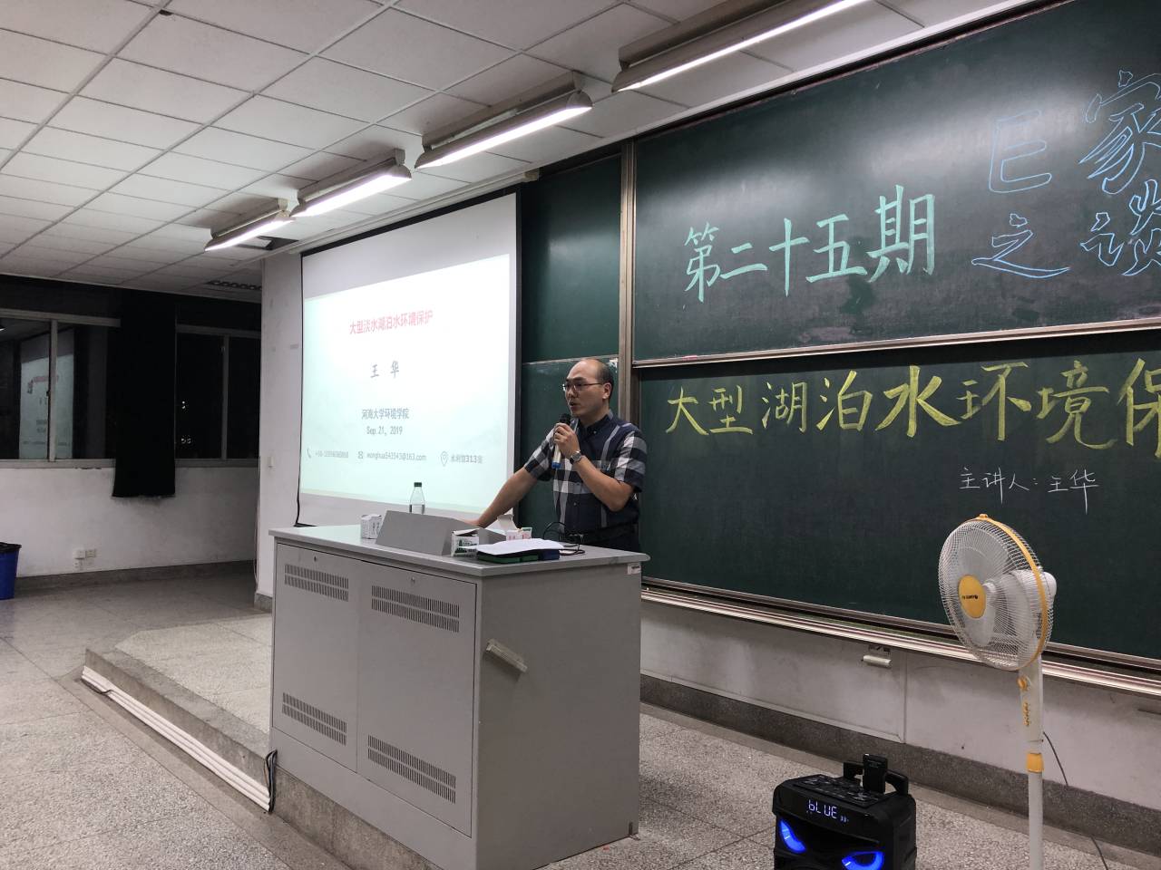 2019年9月21日晚上6:30,HEYZO 学生科学技术学会邀请HEYZO 环境科学与工程博士生导师王华教授在致用楼101举办了第二十五期E家之谈“大型湖泊水环境保护”讲座。