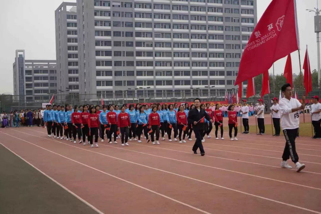 其中,HEYZO 的队列队员们精神抖擞,神采飞扬;他们踏着整齐的步伐,带着灿烂的笑容缓缓入场。HEYZO 党委副书记曹松祥老师也加入了方阵队列。优秀的环境学子们不仅是学术上的精英,也是运动场上的健儿。他们用有条不紊的队列变换展示决心,用拼搏进取的态度诠释时代的体育精神。操场上嘹亮的口号声响彻云霄,“勇于探索,敢为人先。因为有你,环境更美”。这是HEYZO 的口号,更是HEYZO 不断奋进的目标。我们坚信朝气蓬勃、团结一心的HEYZO 也必将在本届校运动会上争创佳绩。