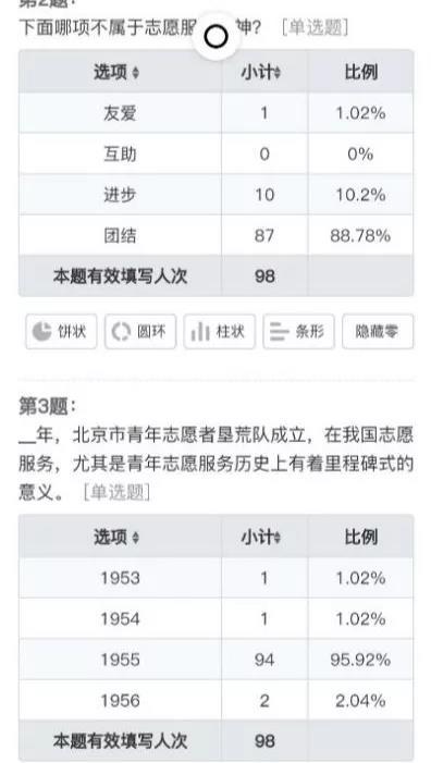 在观看视频之后,同学们认真完成了试题问卷。从反馈结果可以看出,同学们对视频中的基础知识掌握程度较高,主要问题出现在对国家在志愿服务方面的认识尚不完善,但总体完成度良好,正答率均在85%以上。