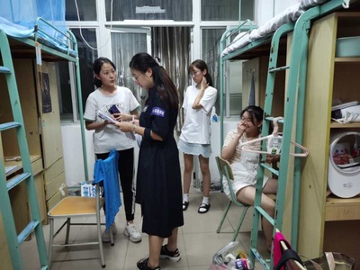 结束了两天的迎新工作,每位工作人员都非常疲累。作为环境院2020级辅导员,金意倩老师和杨铮老师顾不上休息便来到学生公寓进行探访,关心学生报到情况和思想动态,并向学生表示HEYZO