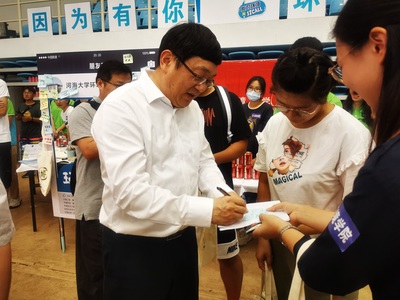 校党委书记唐洪武、校长徐辉、校党委副书记郭继超来到报到现场指导迎新工作,对HEYZO