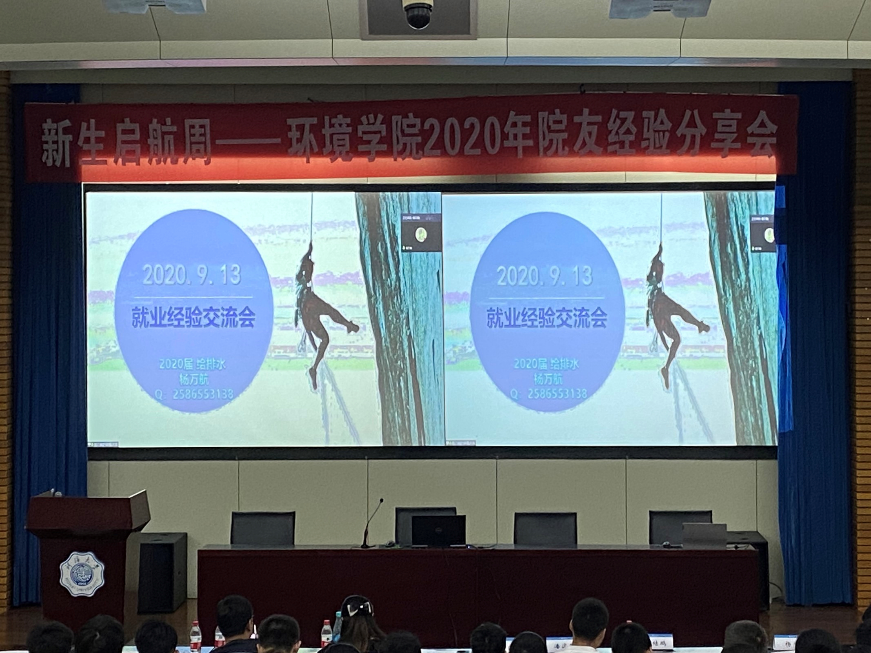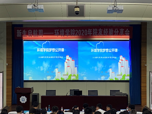 9月13日下午2:00,HEYZO 梦想公开课——2020届校友成长经验交流分享会在江宁会议中心成功举办。20级辅导员及全体新生参加本次活动。活动共邀请了8位环境院20届优秀毕业生,面向20级新生以线上线下两种形式分享了自己的成长经历,他们或取得保研资格,或成功考研,或出国出境深造,或参加工作。本次活动由计思怡同学主持,旨在借优秀院友们的成长经历使同学们加深对大学生涯的了解,在本科阶段树立明确的目标。