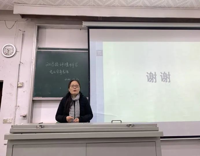 最后,环境一班班导师顾莉老师在讲话中总结了班会提出的各项问题,并表示会加强与任课老师及班级同学的沟通交流,保障各项学习工作的顺利开展。最后,顾莉老师提醒了各位同学在元旦及春节期间注重防护,注意安全。