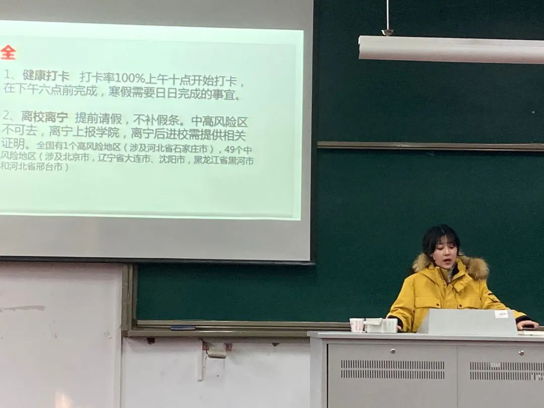 最后,陈诗宇老师再次强调了,新型冠状病毒疫情期间的安全问题,提醒同学们注意出行安全,加强个人防护,希望同学们能够度过一个安全快乐的新年。
