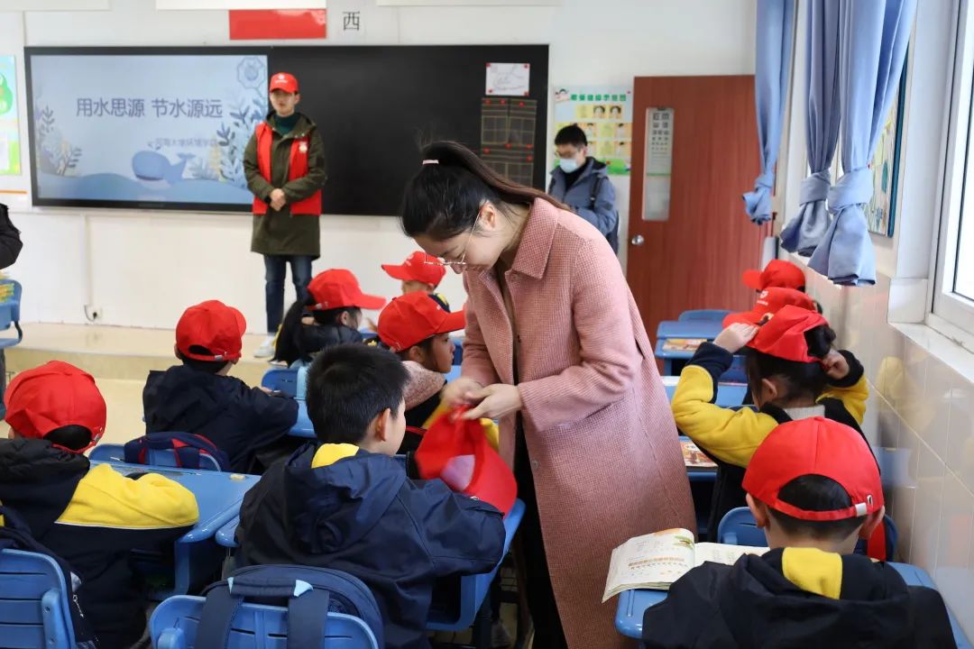 升旗仪式结束,志愿者们分为两组,到两个班级中开展用水思源、节水源远的主题班会。