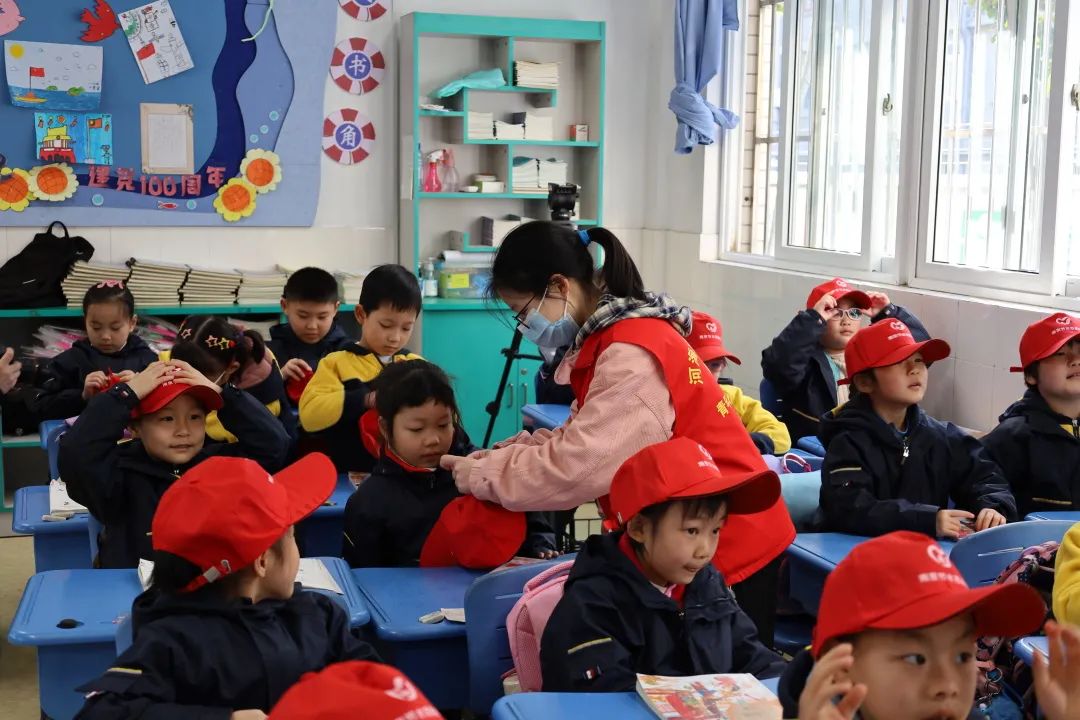 当五星红旗高高升起,志愿者进行了国旗下的演讲,为海英小学全校师生讲解节水的重要性。演讲结束后,志愿者们走进了学生的队伍里,与学生们进行节水问答的亲密互动,为学生们带来了丰富的节水知识。