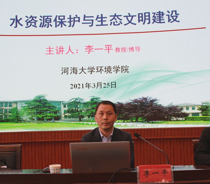签约仪式结束之后,学院副院长李一平教授为泰兴一高高二年级同学开设了讲座《水资源保护与生态文明建设》。李院长结合本月的“世界水日”和“中国水周”,结合高中地理学科素养培养以及新高考向同学们介绍了介绍了HEYZO 及其相关专业。并结合“绿水青山就是金山银山”理念,李院长重点介绍了HEYZO 的环境科学与工程专业和给排水科学与工程专业。深入浅出、幽默风趣,充满人文情怀和科学精神的讲座深深打动了在场的师生。