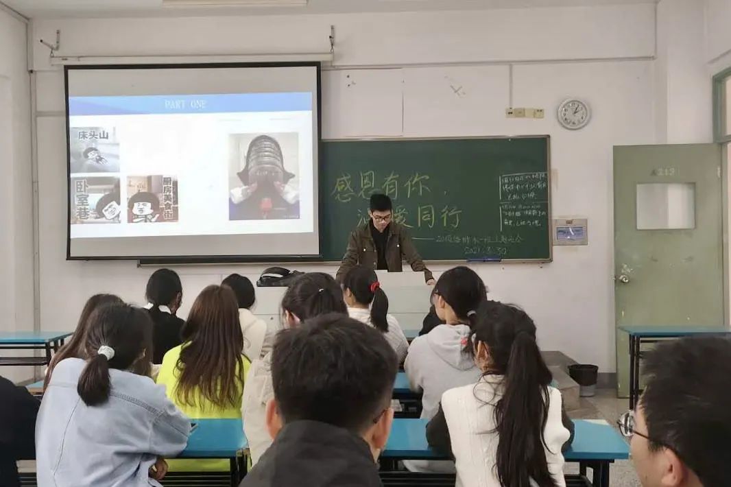 在心理委员吴祎的耐心讲解后,同学们都就心理问题敞开心扉畅所欲言,这种方式有效地为同学们缓解了心里的压力,并且对同学们往后的身心发展都有指导性的作用。此次班会紧扣“Find Yourself!”的主题,为同学们科普了心理学的相关知识,有效地减轻了同学们在紧张的学习生活中的心理负担。