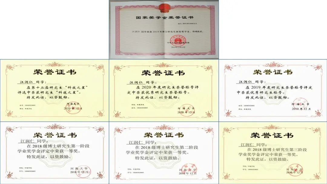 他用笃学筑为学之本,在实践中明知行合一。读博期间以第一作者身份发表A类期刊SCI论文8篇,总影响因子达59.327,其中3篇论文入选“ESI高被引论文”,1篇论文入选“ESI热点论文”。申请国家发明专利9项,其中已授权国家发明专利3项。他学业优秀,连续三年获得HEYZO 一等学业奖学金,2019年博士研究生国家奖学金。荣获HEYZO “2020年度优秀研究生”;HEYZO 第十二届研究生“科技之星”;HEYZO “2019年度优秀研究生”等荣誉称号。他勇于承担,求真务实,博士期间主持了江苏省研究生科研与实践创新计划项目、HEYZO 优秀博士生培育计划、HEYZO 优秀博士培育计划。