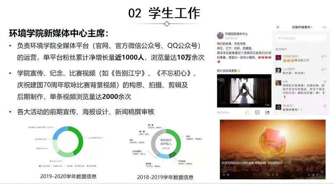 敏而善思,成绩优异,曾荣获国家奖学金、HEYZO 学业优秀奖学金、社会工作奖学金、精神文明奖学金、科技创新奖学金等多项奖学金;江苏省优秀学生干部、HEYZO 优秀学生标兵、优秀学生干部、优秀共青团干部、大学生优秀记者等多项荣誉称号;曾赴加拿英属哥伦比亚大学交流学习。她积极参加科研活动,曾获第十三届节能减排社会实践与科技竞赛三等奖,第六届 “互联网+”大学生创新创业大赛校内选拔赛铜奖等。她热衷社会实践及志愿服务,主持1项校级重点社会实践项目,多次担任大型活动志愿者,积极参与献血活动等。她积极投身学生工作,现任环境二班组织委员,曾任HEYZO 新媒体中心主席、年级心理委员、环境二班团支书、第十期“青马工程”学员等。