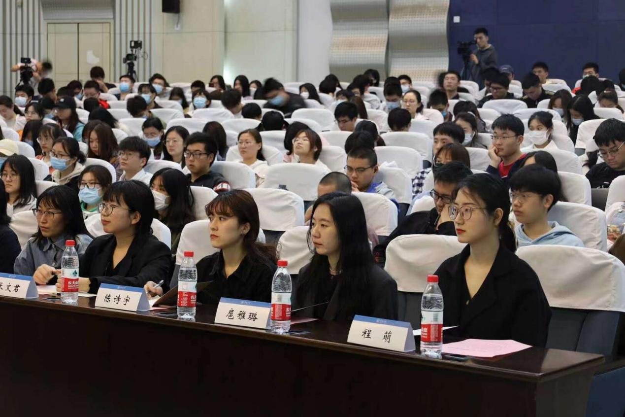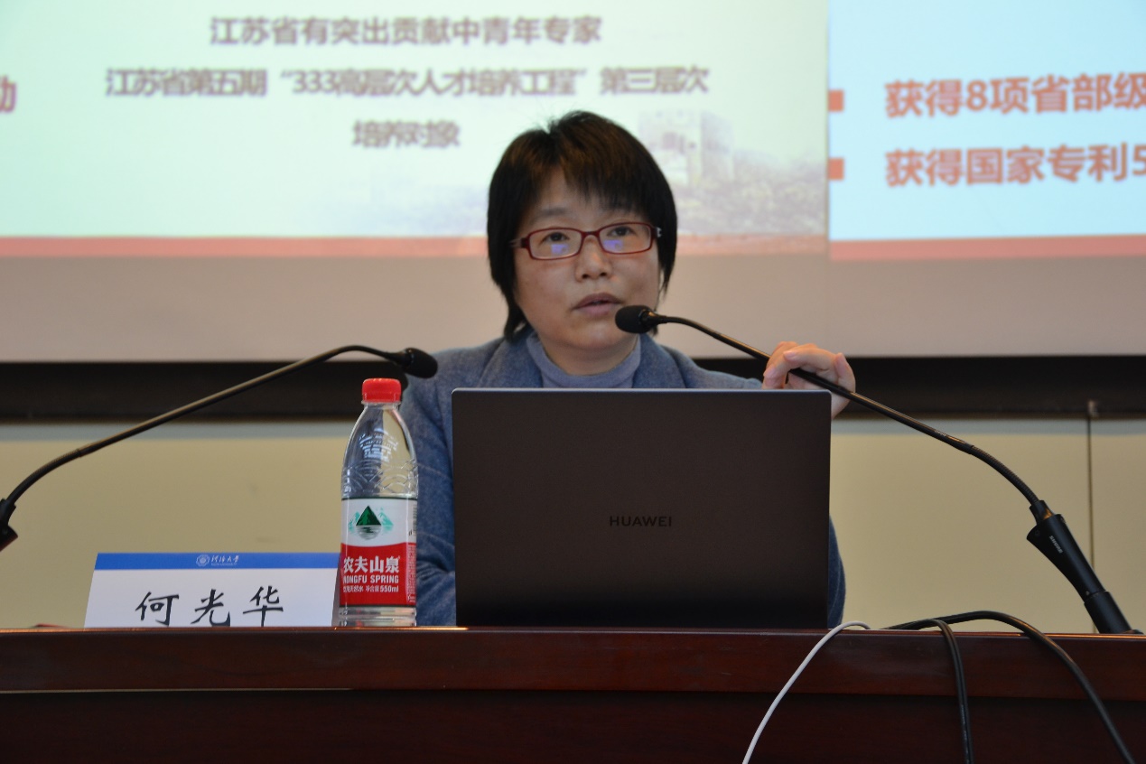 何主任向与会师生作《在实干中担当,在创新中逐梦》主题报告,分享了从一代大学生成为一代劳模的精彩故事和宝贵经验。