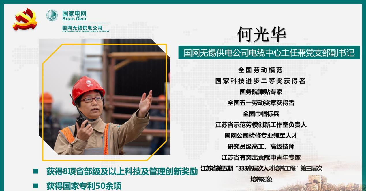 本次分享会的分享嘉宾为全国劳动模范、国家科技进步二等奖获得者、国务院津贴专家、全国五一劳动奖章获得者、全国巾帼标兵、国网无锡供电公司电缆中心主任兼党支部副书记何光华。