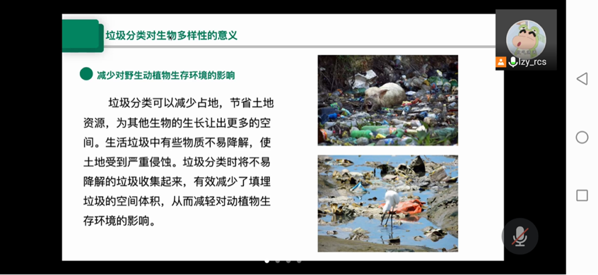 最后,主讲人向大家介绍了垃圾分类对生物多样性的意义。其中最重要的是,垃圾分类有助于减少对野生动植物生存环境的影响,从而保护生物多样性,构造人与自然和谐相处的美好图景。