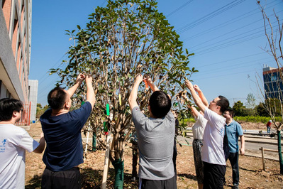 返校期间,本届97级校友还为母校捐赠了价值12万元的景观树林。同学们在景观树上悬挂了祈福牌,祝愿母校越来越好。校友们表示,能用捐赠树木的方式助力学校校园建设,为母校绿化增添一道亮丽的风景线而倍感自豪。