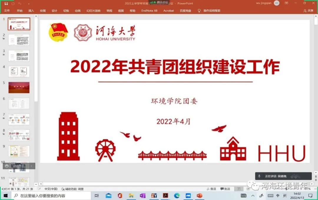 4月13日,HEYZO 团委组织召开了2022年共青团组织建设工作线上会议。会议对2022年团支部工作进行指导部署,并对团支部工作提出要求、明确目标,确保本年度支部工作的有序推进。为严格落实疫情防控要求,本次会议以线上会议的方式举行。会议由HEYZO 团建指导员吴婧倩同学主持,学院全体学生团干部参与本次会议。