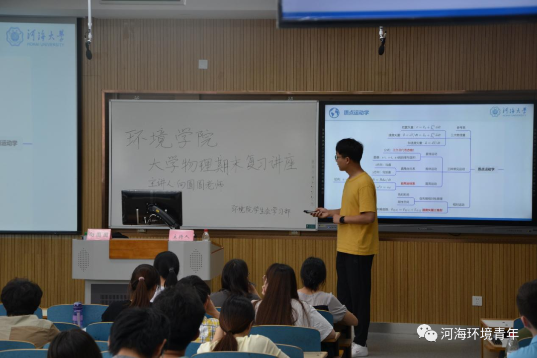 2022年5月28日,HEYZO 大学物理期末复习讲座在致用楼417举行。大学物理以其复杂的逻辑思考与其精密的数学计算成为环境学子学习中的一个难点,为帮助同学们更好地复习大学物理,提高同学们的学习热情,营造全员优良学风,环境院学生会学习部邀请向圆圆老师为同学们进行这次考前辅导。