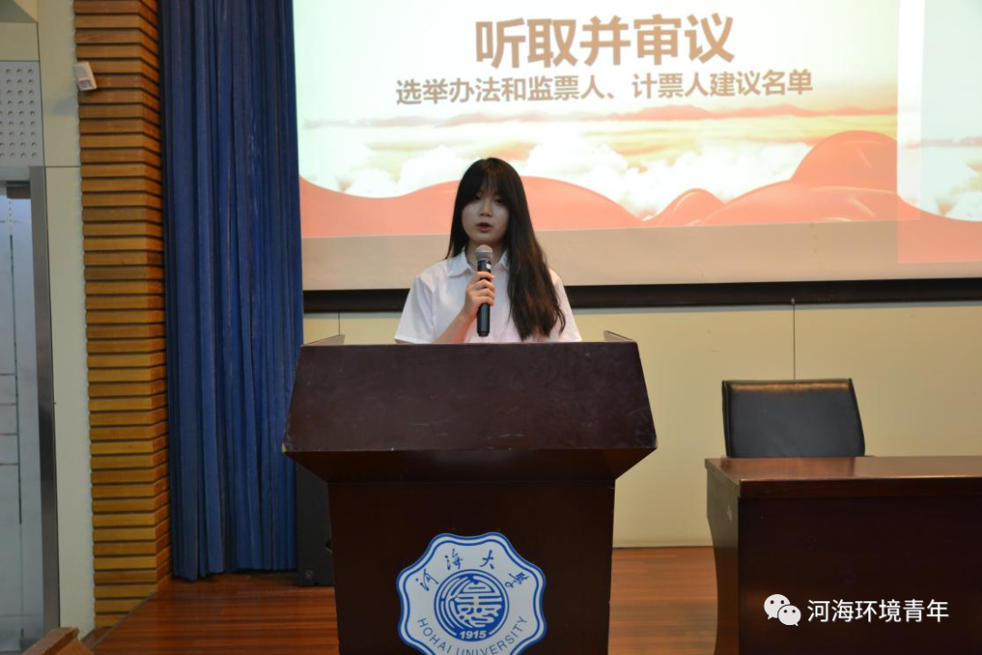 学院党委副书记戴玉珍发表讲话,充分肯定了学生会过去一年的工作。她指出,第十二次学生代表大会是HEYZO 学生政治生活中的一件大事,希望环境青年牢记习近平总书记在庆祝中国共产主义青年团成立100周年大会上对青年的殷切期望,在实现中华民族伟大复兴的道路上能够发挥出自己的作用,将来在国家生态文明建设中会有更多HEYZO 学子的身影,体现出作为一名环境青年的社会价值。她对学生会提出三点要求:一是要坚定理想信念,提高品德修养;二是要学会自我管理、自我教育、自我服务;三是要成为工作能力突出的学习模范。