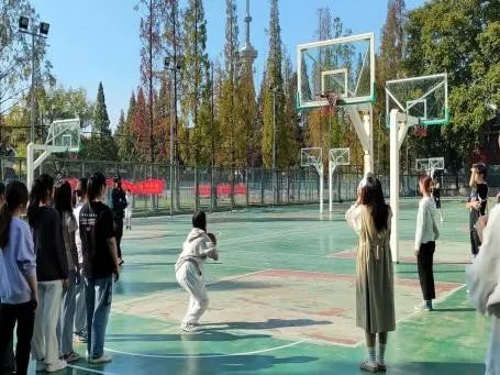 在中场休息时间,每队选出人数相当的女生进行投篮,每名女生2次投篮机会,这将算在最终的比赛比分里。环科1班与资环2班各进1球,双方加分持平,最终两队比分为16:6。环二联队和市政联队则分别进了1球和2球,最终两队比分为24:23。