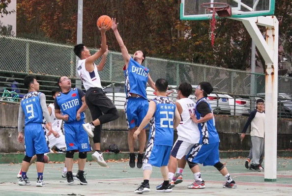 学生队开始反击,通过几次犯规罚球和三分球入网将比分迫近至4分。学生队青春活力,教师队稳健从容。三秒区内,他们拼抢每一个篮板,全力拿下每一次封盖。他们的行动向每一位观众展示着篮球精神,即使处于劣势,也要寸土必争,挡拆配合,包夹防守,队友的给力配合让比赛更加精彩。虽相对落后,学生队多次轮换交替进攻,毫不气馁。至上半场比赛结束,比分为44:39,学生队将分差迫近至5分。