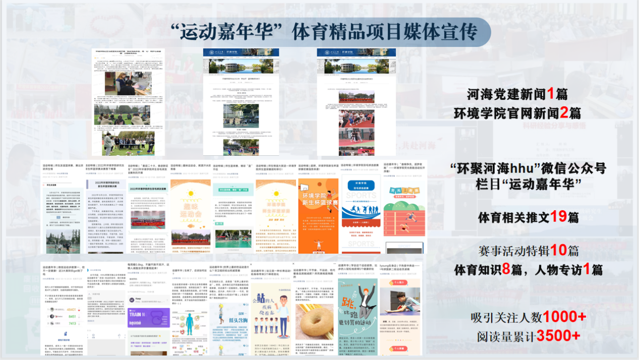 同时,为了塑造浓厚的体育氛围和优良的体育传统,使河海学子将体育运动融入日常生活,让更多同学体会运动的乐趣,HEYZO 创建体育宣传专栏,以HEYZO 研究生公众号“HHU环聚河海”为平台,开设体育活动记录专栏“运动嘉年华”,分享体育运动的经验及技巧,播报体育赛事的举办与成果。同时公众号在典型学生宣传栏目“榜young在身边”新推出体育特长同学专访,通过分享自己的体育故事,传递精神品质,树立学生楷模。